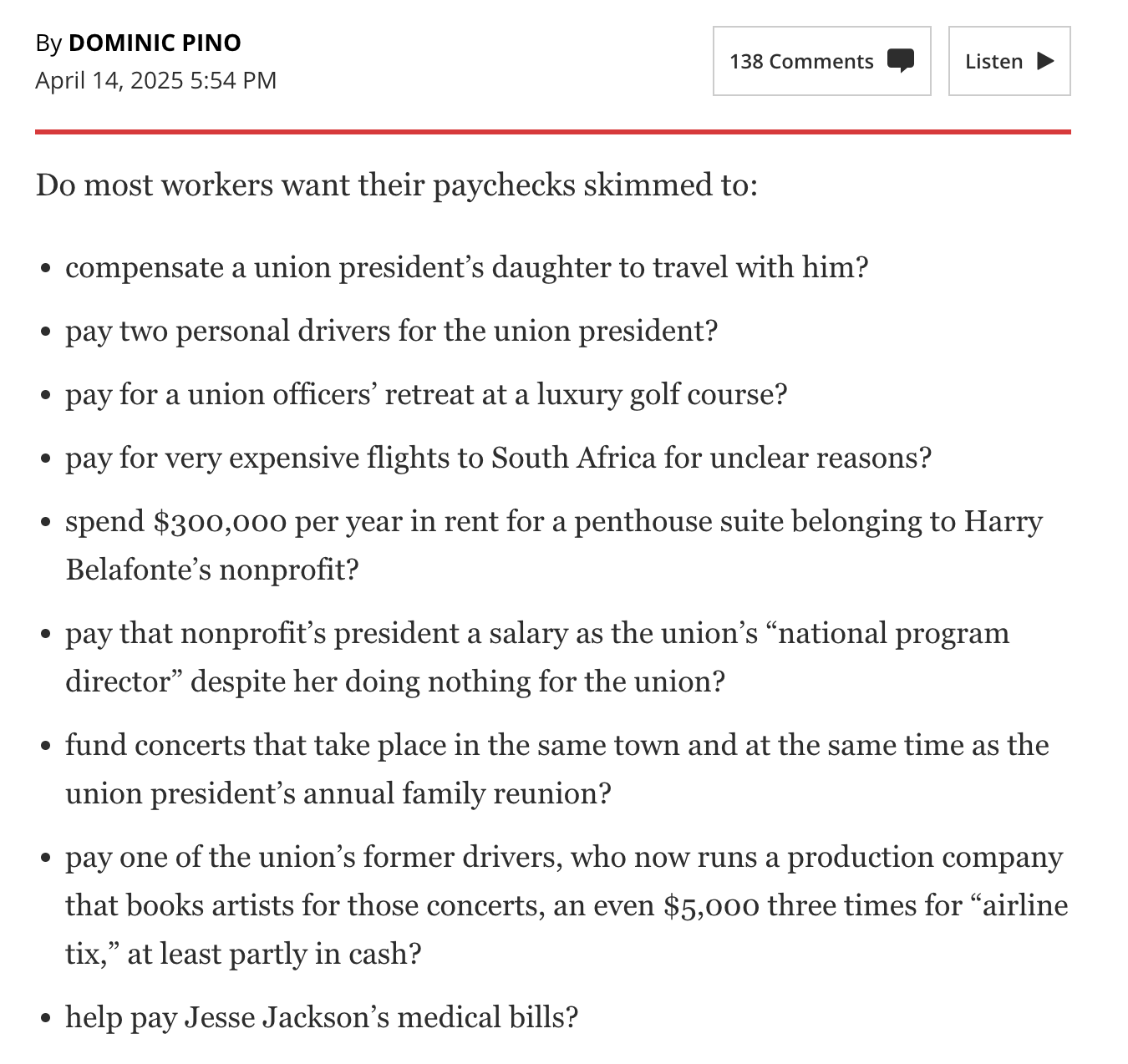 The union denies wrongdoing and insists that its expenditures were “properly vetted and recorded.” The crazy part is that it might actually be true. The rules governing union expenditures are so lax that it’s possible many of these absurd expenses are technically permitted, which is all the more reason that most workers don’t want anything to do with organized labor.